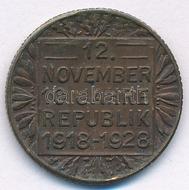 Ausztria 1928. "10 éves a Köztársaság" kétoldalas bronz emlékzseton (24mm) T:XF