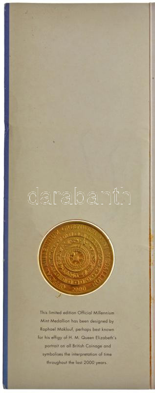 Beschreibung: Nagy-Britannia 2000. "Millenniumi emlékérem Greenwich" aranyozott fém emlékérem (44mm) sérült karton dísztokban T:PP