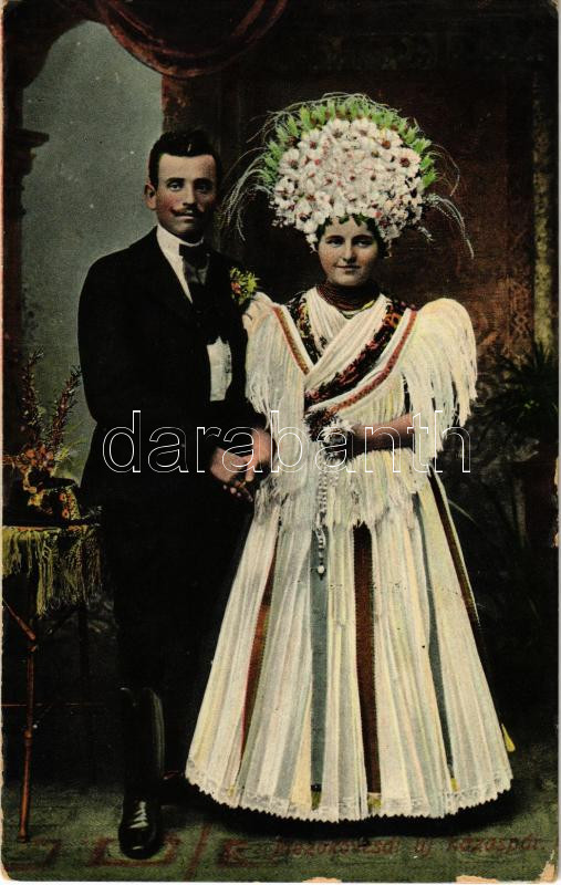 Mezőkövesdi új házaspár / Hungarian folklore (Rb) https://www.darabanth.com/de/448-Fernauktion/448.0/Ansichtskarten/Folklore~1500057/Mezokovesdi-uj-hazaspar-Hungarian-folklore-Rb~II2968335