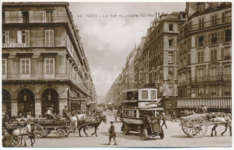 Paris, La Rue du Louvre. Felix Hubin. Derivaux / street view, shops, a... https://www.darabanth.com/de/448-Fernauktion/448.0/Ansichtskarten/Frankreich~1500028/Paris-La-Rue-du-Louvre-Felix-Hubin-Derivaux-street-view-shops-autobus-ND-photo~II2977053