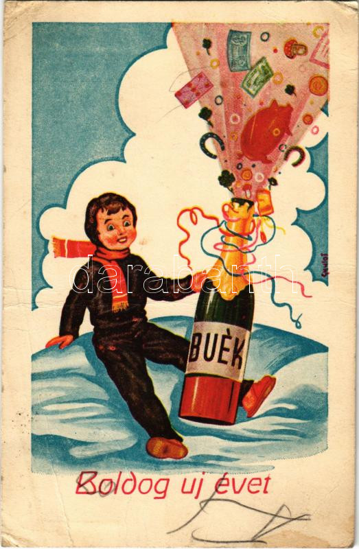 1933 Boldog új évet! BUÉK pezsgő / New Year greeting, champagne s: Gyu... https://www.darabanth.com/de/448-Fernauktion/448.0/Ansichtskarten/GruC39Fkarten-Feste~1500084/1933-Boldog-uj-evet-BUEK-pezsgo-New-Year-greeting-champagne-s-Gyulai-fa~II2968301