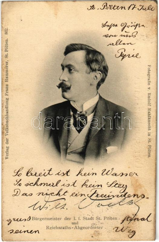 1901 Wilhelm Voelkl (Völkl) - Bürgermeister der 1. f. Stadt St. Pölten und Reichsraths-Abgeordneter. Fotografie v. Rudolf Mahlknecht (fl)
