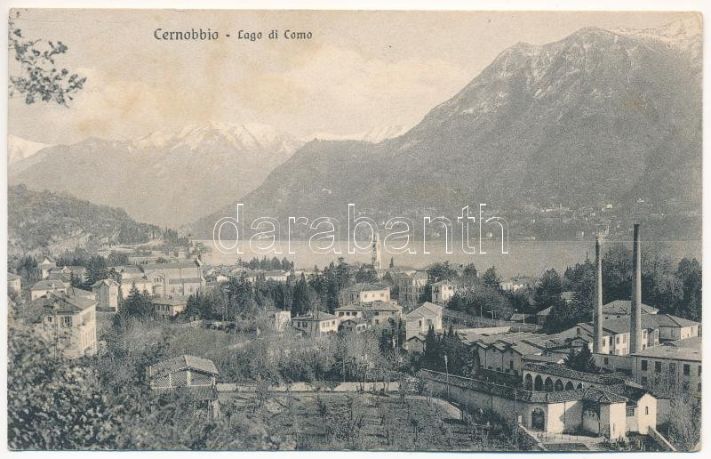 Cernobbio; Lago di Como / general view, lake, factory chimney (fl) https://www.darabanth.com/de/448-Fernauktion/448.0/Ansichtskarten/Italien~1500038/Cernobbio-Lago-di-Como-general-view-lake-factory-chimney-fl~II2976902