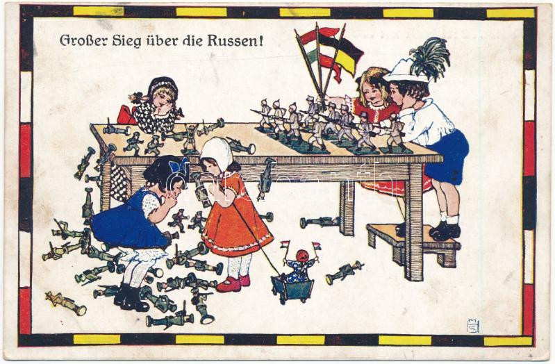 Grosser Sieg über die Russen! Unsere Kinder im Weltkriege. N.K.W.I. VI/2. Nr. 30. 1916. / Központi hatalmak az oroszok ellen, gyerekek háborúsat játszanak / WWI military children war game, Central Powers against the Russians (fl)