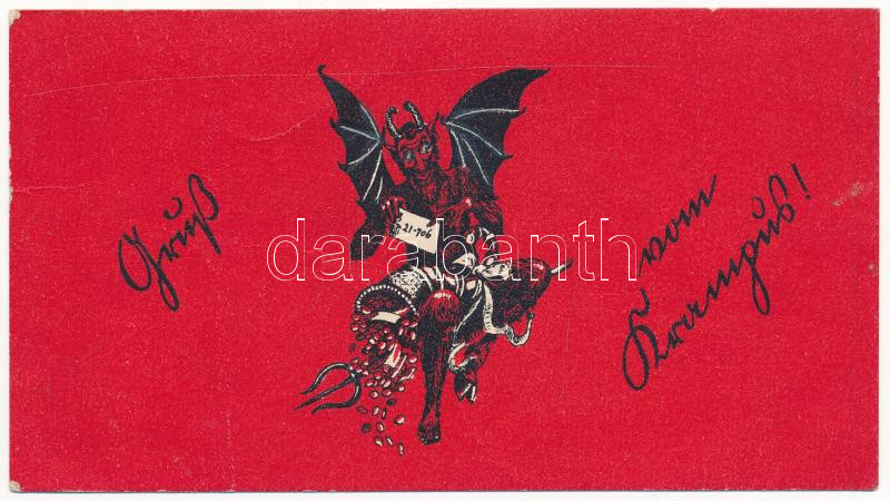 Gruss vom Krampus / Krampuszos üdvözlőlap. Non-PC mini card (10,9 x 6 ... https://www.darabanth.com/de/448-Fernauktion/448.0/Ansichtskarten/Krampus~1500068/Gruss-vom-Krampus-Krampuszos-udvozlolap-Non-PC-mini-card-10-9-x-6-cm-fa~II2972247