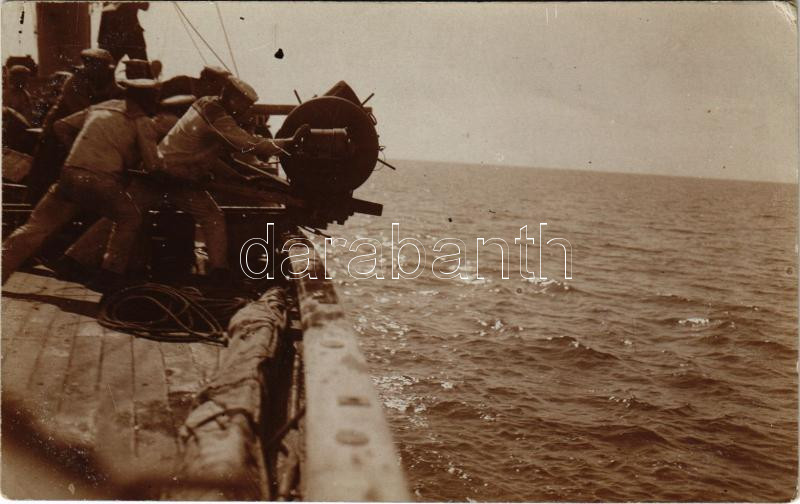 1915 SMS BLITZ Osztrák-Magyar Monarchia Komet-osztályú torpedóhajója (őrhajója) matrózai aknadobás közben / K.u.K. Kriegsmarine / Austro-Hungarian Navy Komet-class torpedo boat's mariners throwing a mine into the sea. photo (EK)