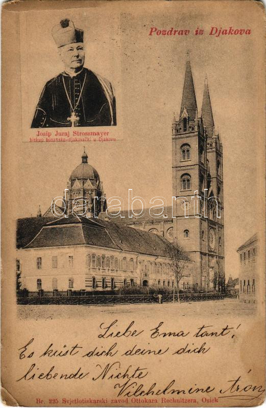 Beschreibung: 1899 (Vorläufer) Diakovár, Djakovo, Dakovo; Josip Juraj Strossmayer biskup bosansko-djakovacki /székesegyház. püspök / cathedral, bishop (fa)