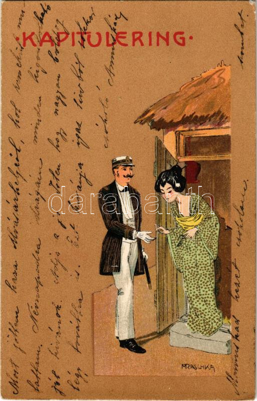 1906 Kapitulering / Japanese style Art Nouvea s: M. Raschka (Raphael K... https://www.darabanth.com/de/448-Fernauktion/448.0/Ansichtskarten/Kunstlerkarten~1500073/1906-Kapitulering-Japanese-style-Art-Nouvea-s-M-Raschka-Raphael-Kirchner~II2975162