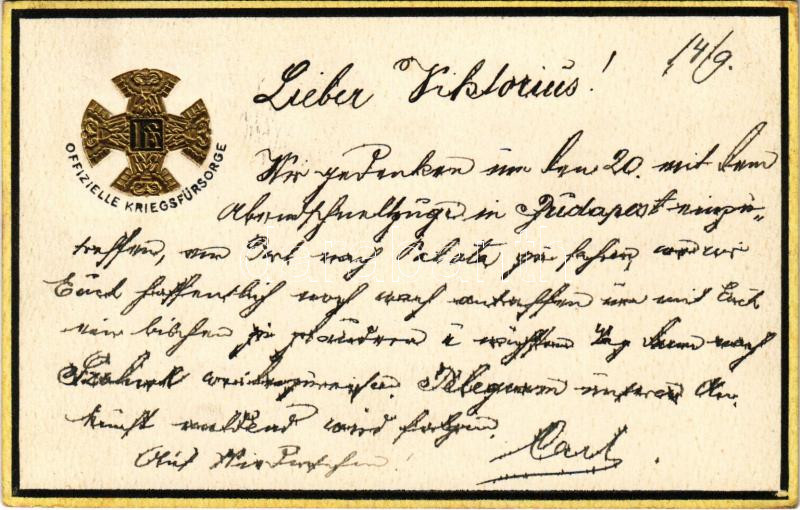 Beschreibung: 1916 Offizielle Kriegsfürsorge. Offizielle Karte für Rotes Kreuz, Kriegsfürsorgeamt Kriegshilfsbüro No. 49. / WWI Austro-Hungarian K.u.K. military support fund. Emb. (EK)
