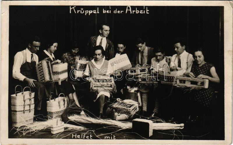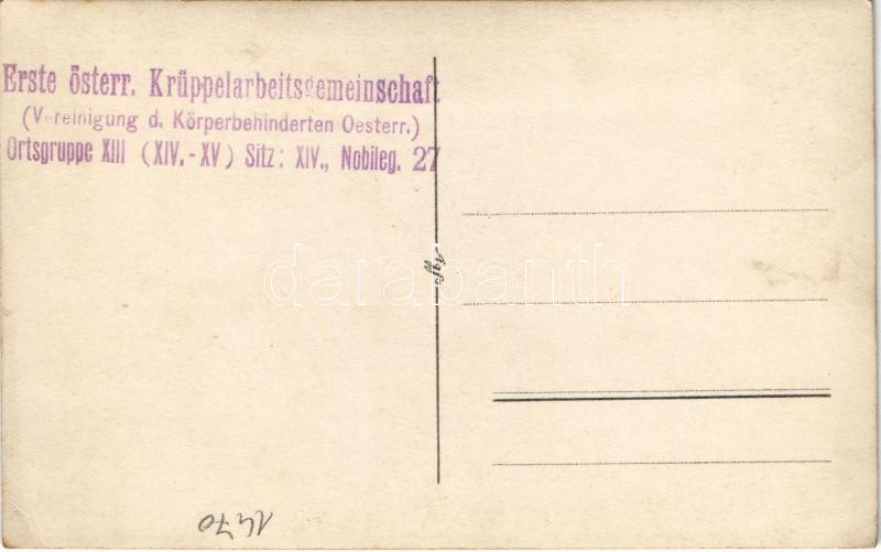 Wien, Vienna, Bécs XIV. Erste österr. Krüppelarbeitsgemeinschaft (Vereinigung d. Körperbehinderten Oesterr.) Ortsgruppe XIII. Sitz: Nobilegasse 27. / First Austrian cripple working group (Association of the physically handicapped) / Az első osztrák rokkant munkacsoport (Osztrák Fizikai Fogyatékosok Szövetsége). photo (EK)