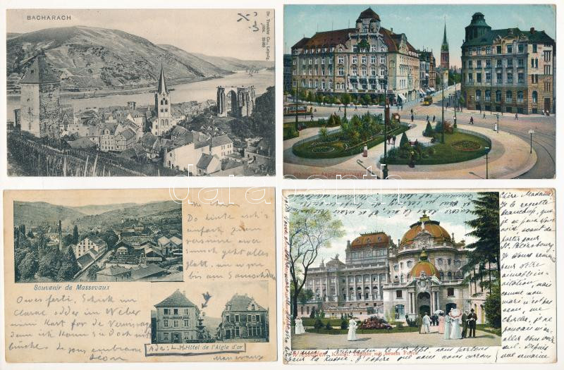Beschreibung: 69 db RÉGI német város képeslap vegyes minőségben, sok hosszú címzéses / 69 pre-1945 German town-view postcards in mixed quality, many pre-1900