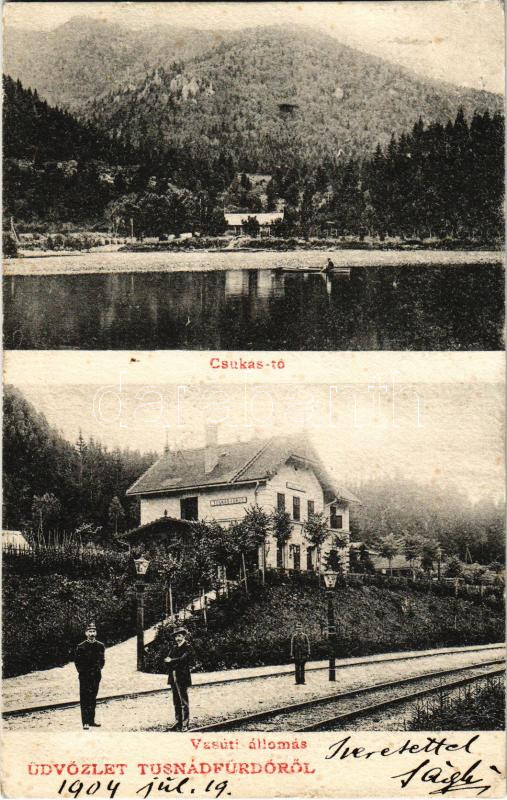1904 Tusnádfürdő, Baile Tusnad; Csukás tó, vasútállomás. Dragomán S. I... https://www.darabanth.com/de/448-Fernauktion/448.0/Ansichtskarten/Siebenburgen~1500006/1904-Tusnadfurdo-Baile-Tusnad-Csukas-to-vasutallomas-Dragoman-S-I-ceg-kiadasa-rai~II2976350