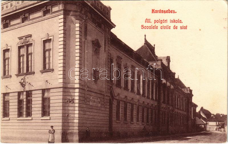 1915 Karánsebes, Caransebes; Állami polgári iskola / Scoalele civile d... https://www.darabanth.com/de/448-Fernauktion/448.0/Ansichtskarten/Siebenburgen~1500006/1915-Karansebes-Caransebes-Allami-polgari-iskola-Scoalele-civile-de-stat-school-EK~II2962175