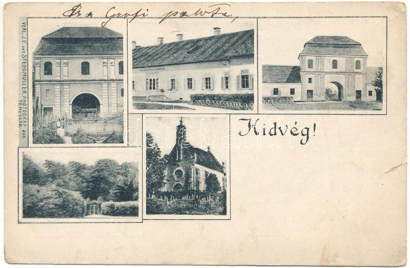Beschreibung: Hídvég, Haghig; Nemes kastély és kápolna. Verl. J. E. von Steegmüller Photograf / castle and chapel (szakadás / tear)