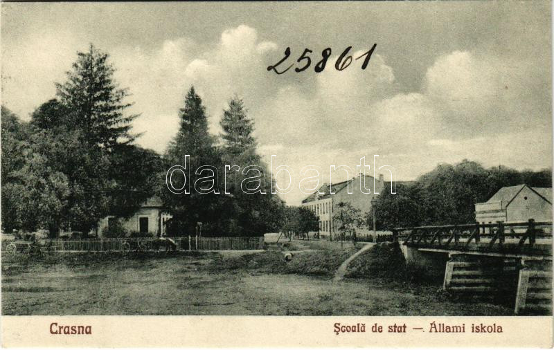 Kraszna, Crasna; Scoala de stat / Állami iskola, híd / state school, b... https://www.darabanth.com/de/448-Fernauktion/448.0/Ansichtskarten/Siebenburgen~1500006/Kraszna-Crasna-Scoala-de-stat-Allami-iskola-hid-state-school-bridge-Rb~II2958766