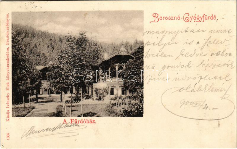 1900 Borosznófürdő, Brusno-kúpele (Borosznó, Brusznó, Brusno); Fürdőhá... https://www.darabanth.com/de/448-Fernauktion/448.0/Ansichtskarten/Slowakei~1500007/1900-Borosznofurdo-Brusno-kupele-Boroszno-Bruszno-Brusno-Furdohaz-Ivanszky-Elek-kia~II2974221