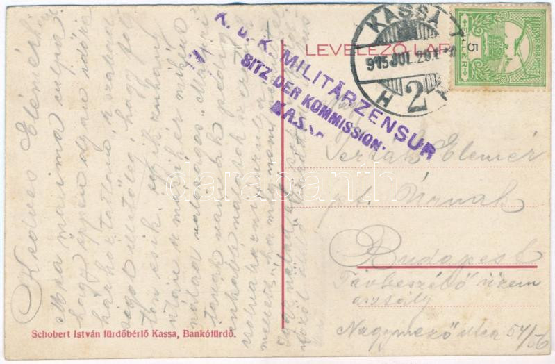 1915 Kassa, Kosice; Bankov / Bankó fürdő szálloda és vendéglő / spa, b... https://www.darabanth.com/de/448-Fernauktion/448.0/Ansichtskarten/Slowakei~1500007/1915-Kassa-Kosice-Bankov-Banko-furdo-szalloda-es-vendeglo-spa-bath-hotel-and-restaura~II2974113