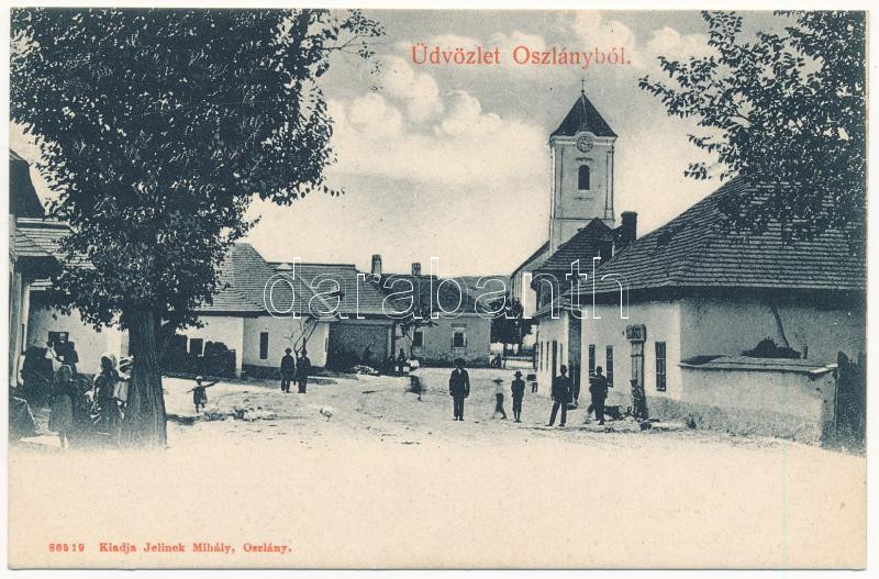 Oszlány, Oslany (Privigye, Okres Prievidza); Fő utca, templom. Jelinek... https://www.darabanth.com/de/448-Fernauktion/448.0/Ansichtskarten/Slowakei~1500007/Oszlany-Oslany-Privigye-Okres-Prievidza-Fo-utca-templom-Jelinek-Mihaly-kiadasa-main-str~II2967225