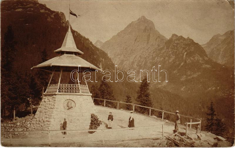 Beschreibung: Tátra, Magas-Tátra, Vysoké Tatry; Tarpatak-völgy, Szilágyi Dezső emléktorony, kilátó / Kohlbacher Tal, Szilágyi-Denkmal / Studená dolina / memorial lookout tower, monument. photo (EK)