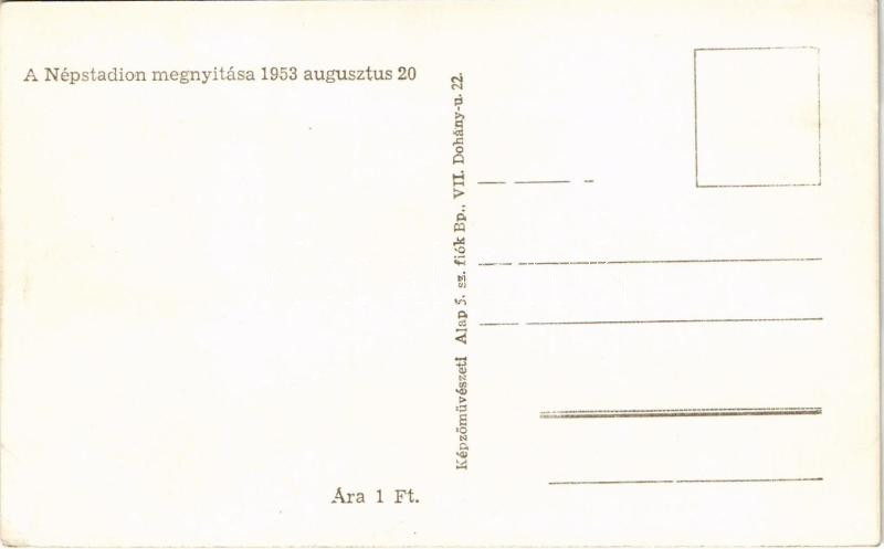 Tornász - 1953 augusztus 20. A budapesti Népstadion megnyitása. Képzőművészeti Alap Kiadóvállalat / Opening of the People's Stadium, gymnast s: Gáll. F. + bélyeg
