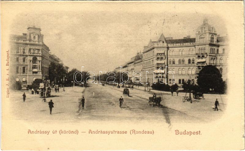 1901 Budapest VI. Andrássy úti körönd. Rigler J.E. rt. (vágott / cut) https://www.darabanth.com/de/448-Fernauktion/448.0/Ansichtskarten/Ungarn~1500013/1901-Budapest-VI-Andrassy-uti-korond-Rigler-JE-rt-vagott-cut~II2950827