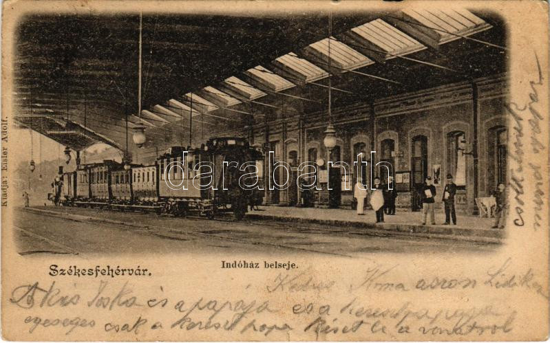 1903 Székesfehérvár, vasútállomás, indóház belseje, vonat. Eisler Adol... https://www.darabanth.com/de/448-Fernauktion/448.0/Ansichtskarten/Ungarn~1500013/1903-Szekesfehervar-vasutallomas-indohaz-belseje-vonat-Eisler-Adolf-kiadasa-szakadas~II2971113
