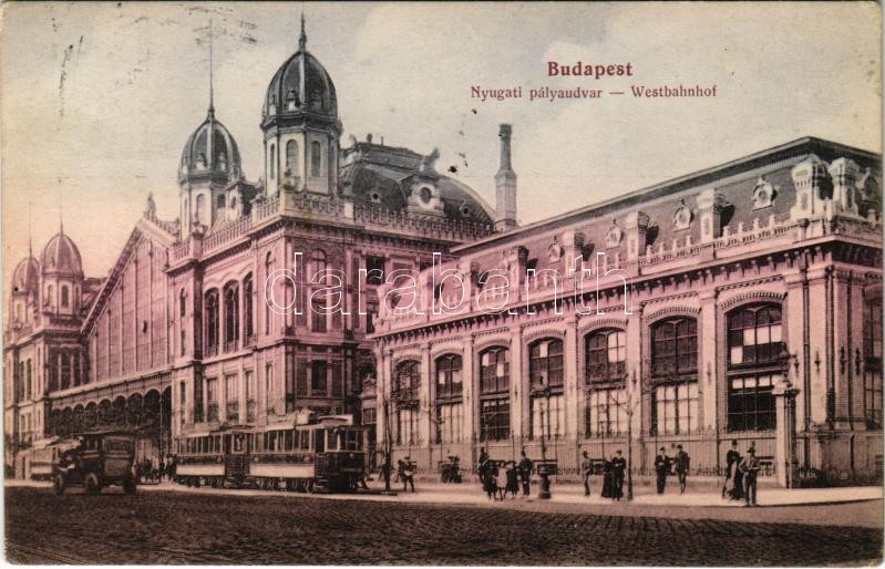 1913 Budapest VI. Nyugati pályaudvar, vasútállomás, villamos, automobi... https://www.darabanth.com/de/448-Fernauktion/448.0/Ansichtskarten/Ungarn~1500013/1913-Budapest-VI-Nyugati-palyaudvar-vasutallomas-villamos-automobil-EK~II2172876