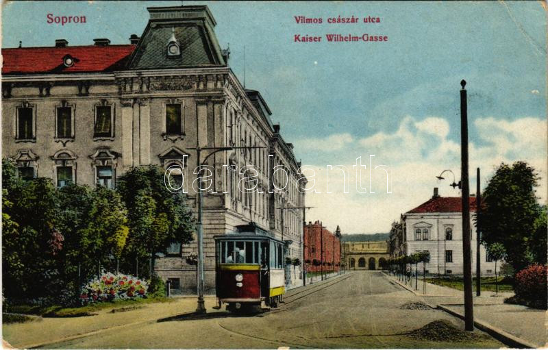 1916 Sopron, Vilmos Császár utca, villamos (Rb) https://www.darabanth.com/de/448-Fernauktion/448.0/Ansichtskarten/Ungarn~1500013/1916-Sopron-Vilmos-Csaszar-utca-villamos-Rb~II2949740