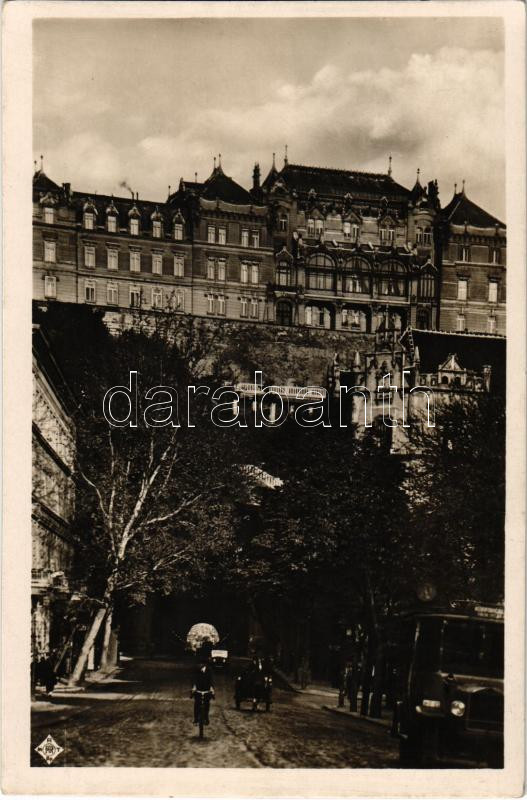 Beschreibung: 1929 Budapest I. Alagút a József főherceg palotával, autóbusz, Alagút utcai oldal