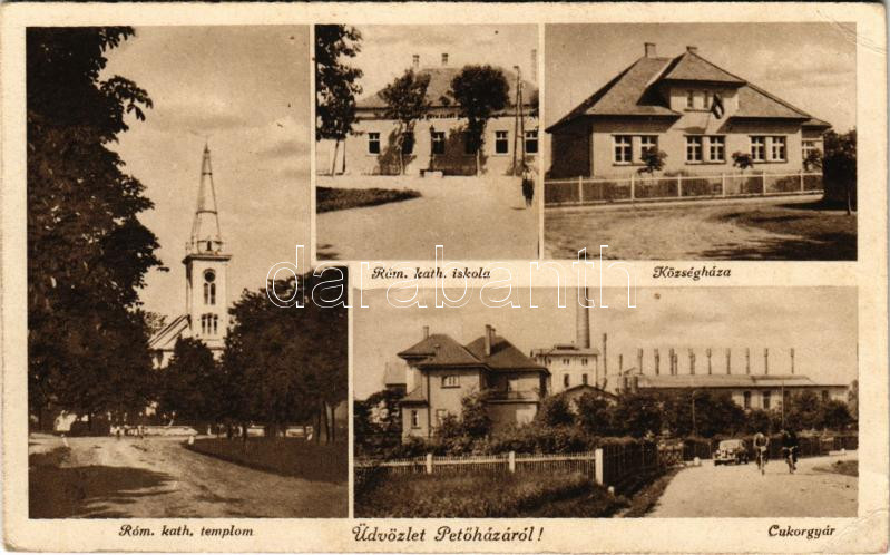 1945 Petőháza, Cukorgyár, római katolikus templom és iskola, községház... https://www.darabanth.com/de/448-Fernauktion/448.0/Ansichtskarten/Ungarn~1500013/1945-Petohaza-Cukorgyar-romai-katolikus-templom-es-iskola-kozseghaza-EK~II2967284