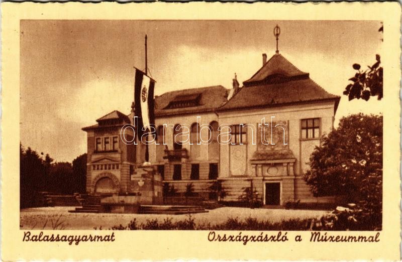 Balassagyarmat, Országzászló a Múzeummal https://www.darabanth.com/de/448-Fernauktion/448.0/Ansichtskarten/Ungarn~1500013/Balassagyarmat-Orszagzaszlo-a-Muzeummal~II2172435