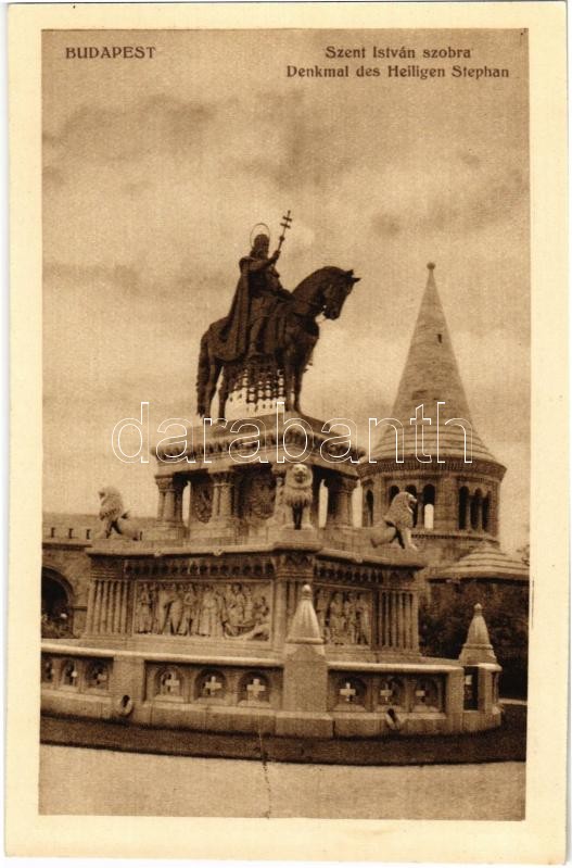 Budapest I. Halászbástya, Szent István szobor. Rigler r.-t. https://www.darabanth.com/de/448-Fernauktion/448.0/Ansichtskarten/Ungarn~1500013/Budapest-I-Halaszbastya-Szent-Istvan-szobor-Rigler-r-t~II2172555
