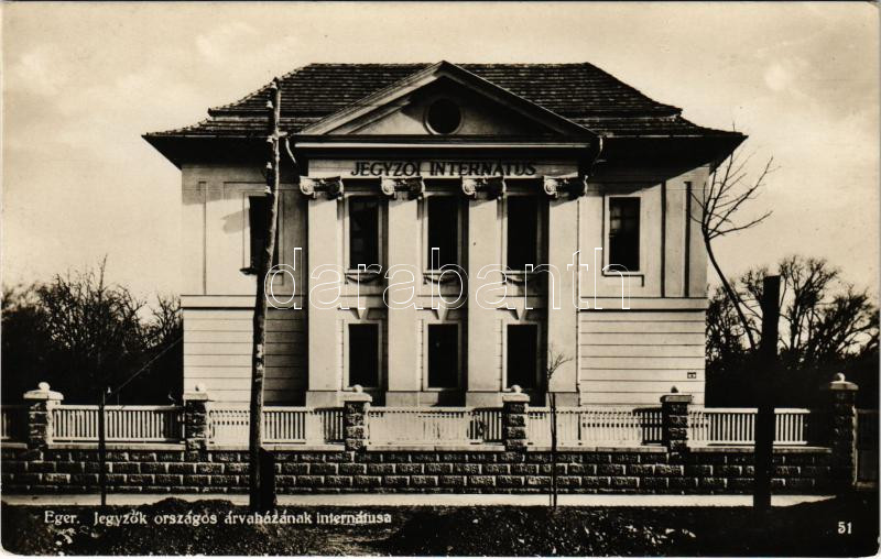 Eger, Jegyzők országos árvaházának internátusa https://www.darabanth.com/de/448-Fernauktion/448.0/Ansichtskarten/Ungarn~1500013/Eger-Jegyzok-orszagos-arvahazanak-internatusa~II2964754