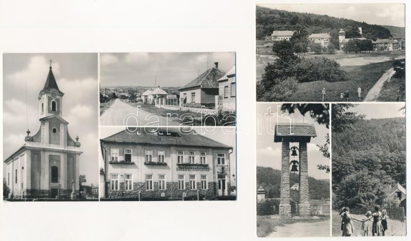 Beschreibung: Győr-Moson-Sopron vármegye - 4 db modern Képzőművészeti Alap képeslap: Nyúli községi tanácsháza, Pinnye, Vitnyéd, Brennbergbánya