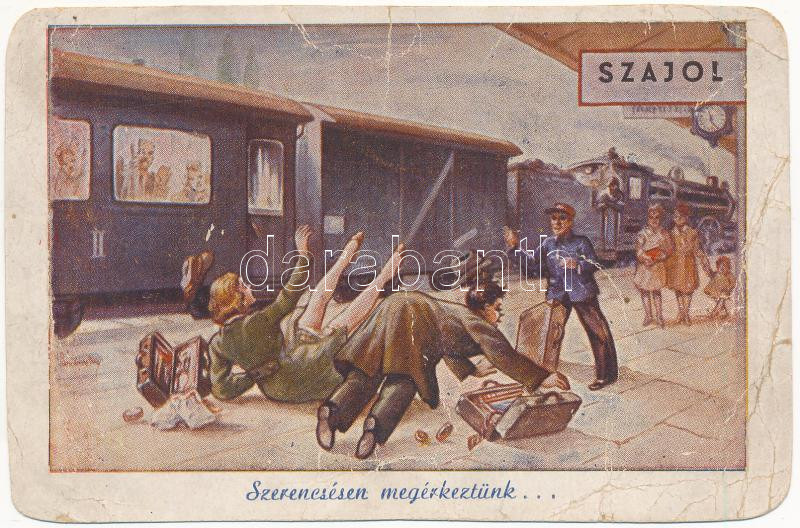 Szajol, vasútállomás. Szerencsésen megérkeztünk humor (szakadásk / tea... https://www.darabanth.com/de/448-Fernauktion/448.0/Ansichtskarten/Ungarn~1500013/Szajol-vasutallomas-Szerencsesen-megerkeztunk-humor-szakadask-tears~II2969653