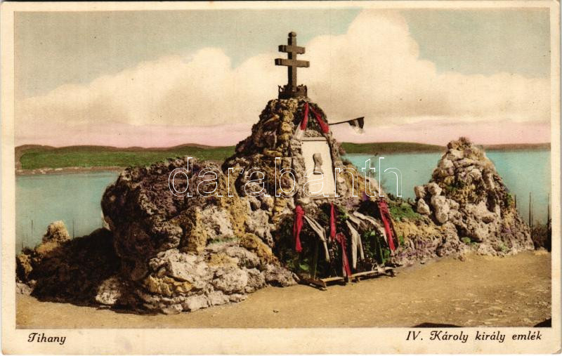Tihany, IV. Károly király emlék magyar szalagokkal https://www.darabanth.com/de/448-Fernauktion/448.0/Ansichtskarten/Ungarn~1500013/Tihany-IV-Karoly-kiraly-emlek-magyar-szalagokkal~II2976131