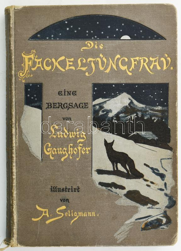 Ganghofer, Ludwig: Die Fackeljungfrau. Eine Bergsage. Illustriert von A. F. Seligmann. Stuttgart, 1903, Adolf Bonz & Comp., VIII+225+(1) p. Szövegközi és egészoldalas illusztrációkkal. Német nyelven. Kiadói aranyozott, festett egészvászon-kötés, festett lapélekkel, kissé kopott borítóval, belül jó állapotban, tulajdonosi névbejegyzéssel.