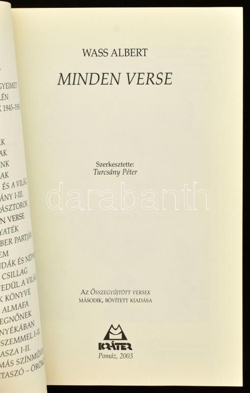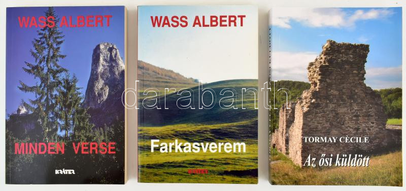3 db könyv: Wass Albert: Farkasverem; Wass Albert minden verse. Pomáz, 2002-2003, Kráter. + Tormay Cécile: Az ősi küldött. Bp., 2009, Kairosz. Kiadói papírkötés.