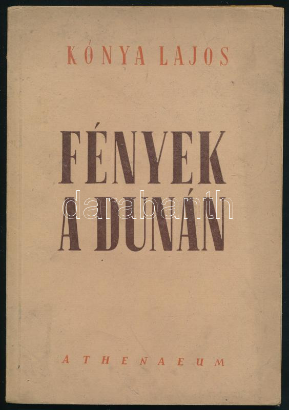 Kónya Lajos: Fények a Dunán. (Bp., 1950), Athenaeum, 91 p. Egyetlen kiadás. Kiadói papírkötés, kissé sérült, koszos, a könyvtesttől elvált borítóval, kis lapszéli ázásnyomokkal.