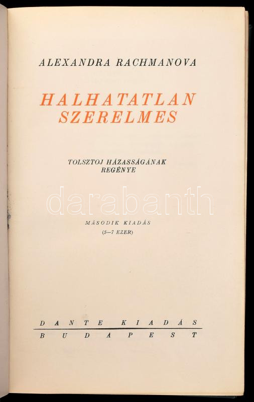 Rachmanova, Alexandra: Halhatatlan szerelmes. Tolsztoj házasságának re... https://www.darabanth.com/de/448-Fernauktion/448.0/Bucher/Bucher-Andere-kuriositaten~2000024/Rachmanova-Alexandra-Halhatatlan-szerelmes-Tolsztoj-hazassaganak-regenye-Ford-Wiesner-Juli~II2968953