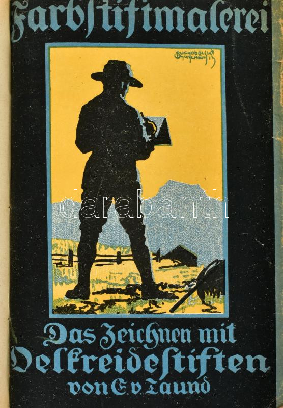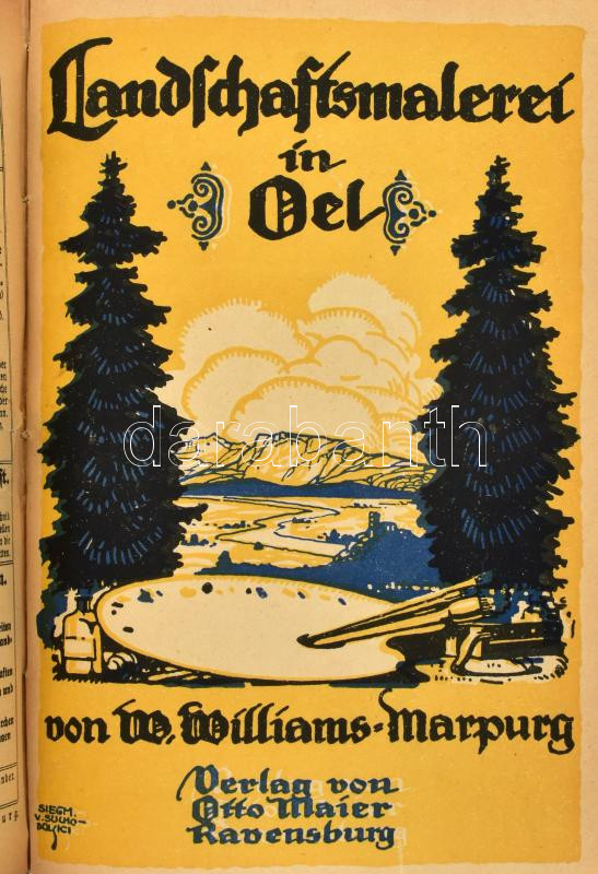E. Von. Taund: Die Farbstiftmalerei. Hozzákötve: Arthur Gruber: Das Federzeichnen. Hozzákötve: A. Rinneberg: Skizzieren auf Wanderungen. Hozzákötve: W. Williams: Landschaftsmalerei in Oel. Ravensburg,én.,Otto Maier. Német nyelven. Átkötött egészvászon-kötés, az elején a színes kihajtható tábla javított, hiányos, bekötött papírborítókkal.