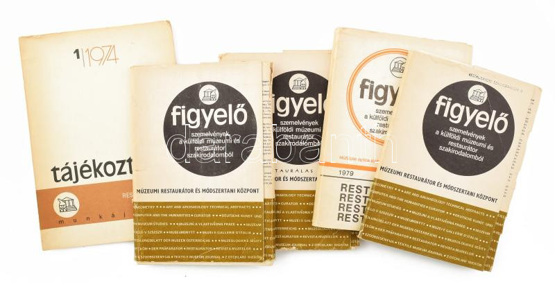1974 Tájékoztató a Múzeumi Restaurátor- és Módszertani Központ munkájáról, 1974/1. szám + 1978-1979 Figyelő, szemelvények a külföldi múzeumi és restaurátor szakirodalomból, 4 db. Vegyes állapotban.