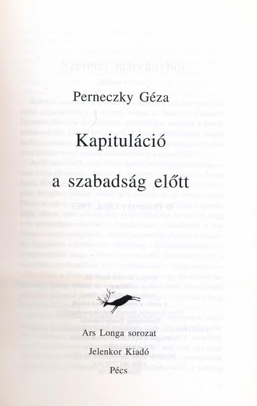 Perneczky Géza: Kapituláció a szabadság előtt. Ars Longa sorozat. Pécs... https://www.darabanth.com/de/448-Fernauktion/448.0/Bucher/Bucher-Architektur-Kunst~2000013/Perneczky-Geza-Kapitulacio-a-szabadsag-elott-Ars-Longa-sorozat-Pecs-1995-Jelenkor-Kiado-K~II2951320