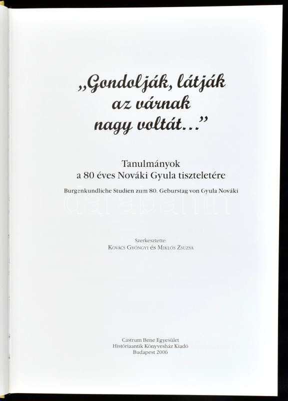 "Gondolják, látják az várnak nagy voltát..." Tanulmányok a 8... https://www.darabanth.com/de/448-Fernauktion/448.0/Bucher/Bucher-Geschichte~2000010/Gondoljak-latjak-az-varnak-nagy-voltat-Tanulmanyok-a-80-eves-Novak-Gyula-tiszteletere~II2863756