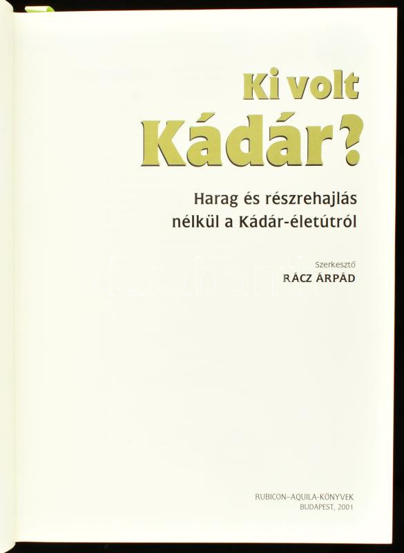 Ki volt Kádár? Harag és részrehajlás nélkül a Kádár-életútról, Szerk.:... https://www.darabanth.com/de/448-Fernauktion/448.0/Bucher/Bucher-Geschichte~2000010/Ki-volt-Kadar-Harag-es-reszrehajlas-nelkul-a-Kadar-eletutrol-Szerk-Racz-Arpad-Bp~II2965965