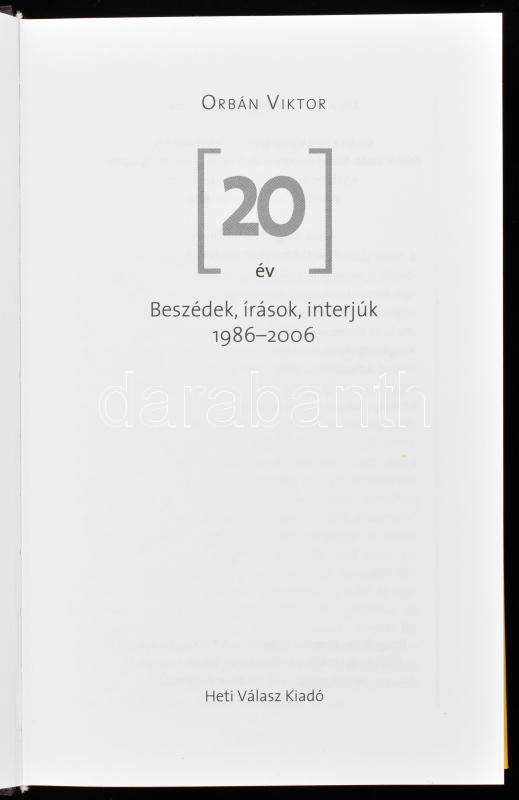 Orbán Viktor: 20 év. Beszédek,írások, interjúk. 2006, Heti Válasz Kiad... https://www.darabanth.com/de/448-Fernauktion/448.0/Bucher/Bucher-Geschichte~2000010/Orban-Viktor-20-ev-Beszedek-irasok-interjuk-2006-Heti-Valasz-Kiado-Kiadoi-kartonalt-~II2938003