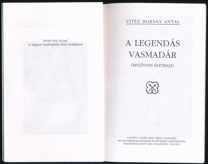 vitéz Boksay Antal: A legendás vasmadár. (Regényes életrajz). Ittebei Kiss József, a legjobb magyar vadászrepülő élete. Bp., 2006, HM Zrínyi Kht. - Zrínyi Kiadó. Reprint kiadás. Kiadói papírkötés.