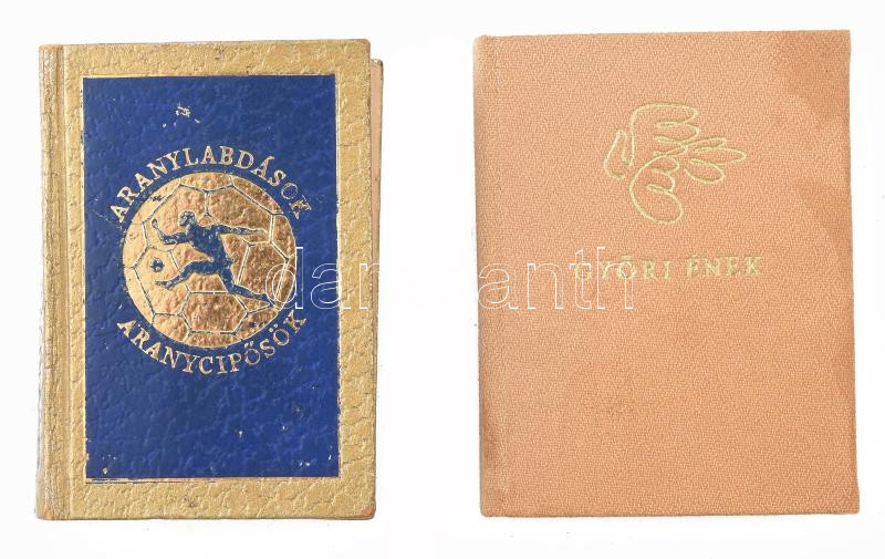 Hoffer József: Aranylabdások, aranycipősök. (Minikönyv). Bp., 1978, Sportpropaganda. Kiadói aranyozott műbőr-kötés, sérült gerinccel. Megjelent 3000 példányban. Számozott (852./1000) példány. + Győri ének - Évszázadok vallomása. szerk: Z. Szabó László. Kiadói vászonkötésben Győr, 1968.
