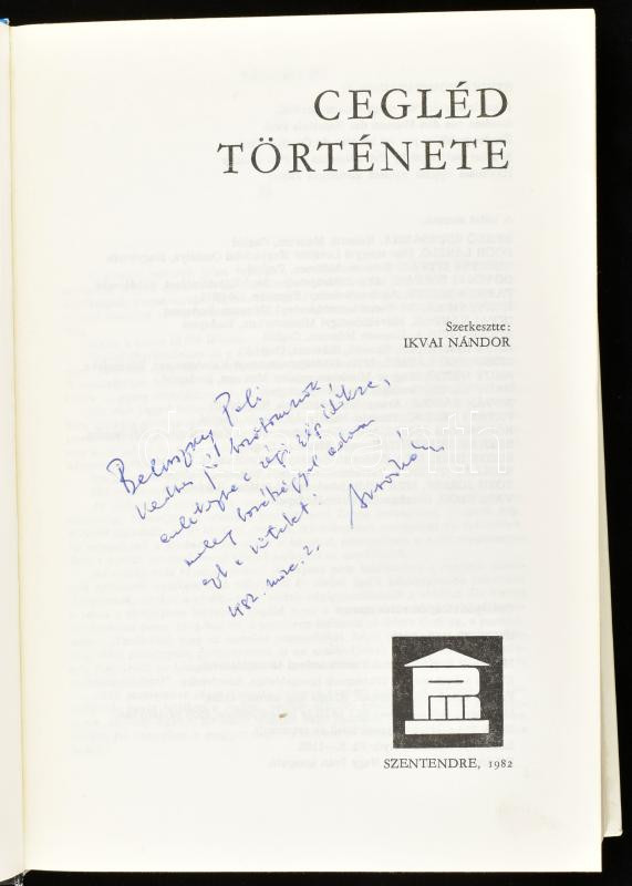 Cegléd története. Szerk.: Ikvai Sándor. Studia Comitatensia 11. Szentendre, 1982, Pest megyei Múzeumok Igazgatósága. Kiadói kartonált papírkötés, a borítón némi kopással. A könyv szerkesztője, Ikvai Nándor (1935-1988) néprajztudós, muzeológus, múzeumigazgató által DEDIKÁLT példány.