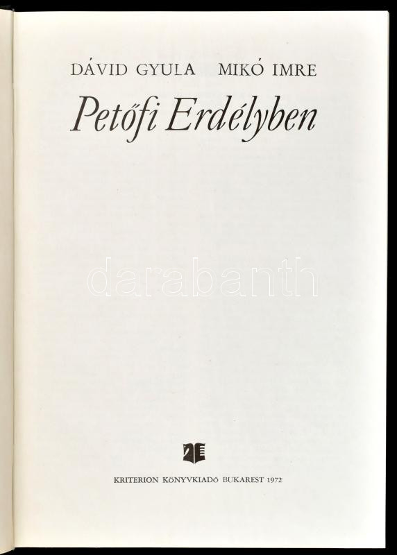 Dávid Gyula - Mikó Imre: Petőfi Erdélyben. Bukarest, 1972, Kriterion. Kiadói egészvászon kötés, kiadói szakadt, kissé kopott papír védőborítóban.